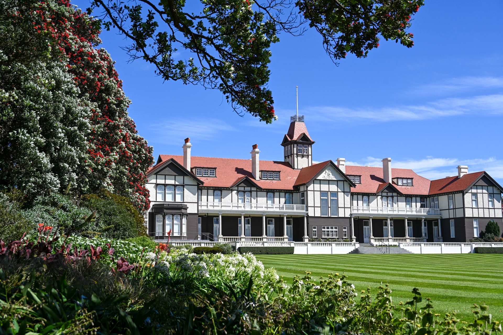 Friday 18 September. On arrival in Wellington, we are met by our driver and travel to Island Bay for lunch overlooking the ocean. Afterwards, we visit Government House, the official residence of the Governor-General of New Zealand, where we enjoy a guided tour of this impressive historic residence – stepping inside rooms rarely seen by the public and hearing stories of state occasions, royal visits and national milestones.